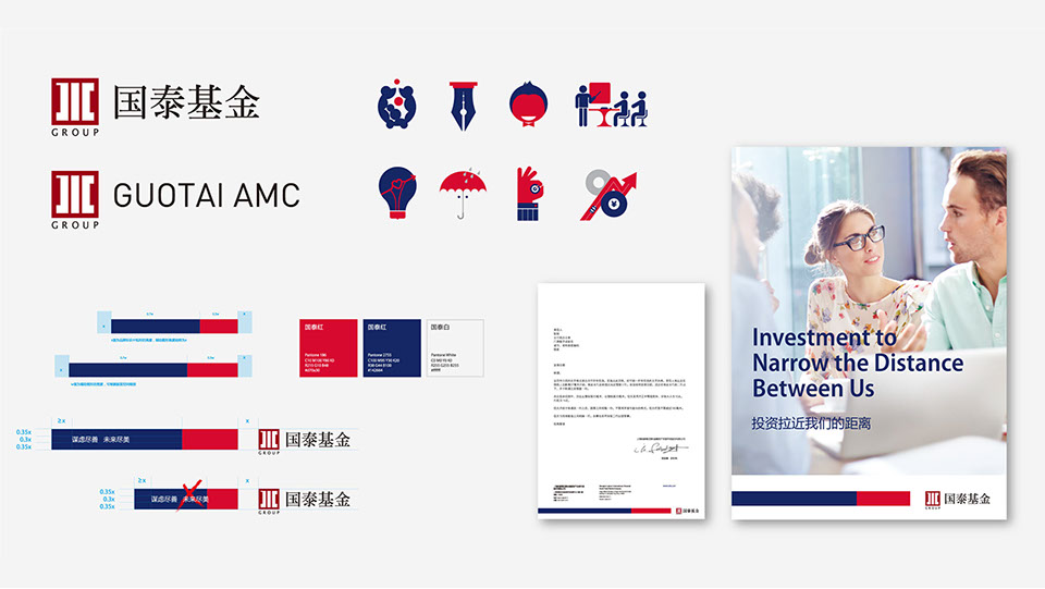 我们基于国泰的金融属性,和中建投的央企特质,重新规划定制国泰基金的视觉基调,并由此延展中西合一的扁平化金融风格。这种转变不仅仅是一个品牌的重塑,更是一个公司、公司内部人员以及他们所承载的公司文化转型的一个高潮。
