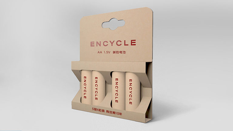 电池挂卡为纯纸质结构设计,材料为再生纤维占25%的循环再生纸和Edible ink(可食用油墨)。电池外膜层则是由PVA可降解薄膜及生物降解性凹印油墨制作。