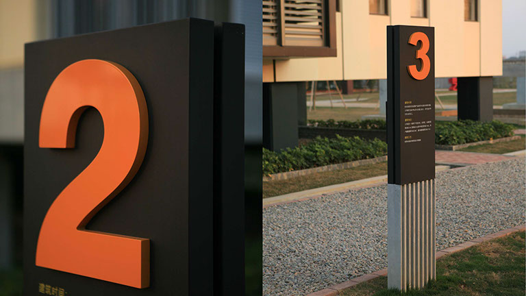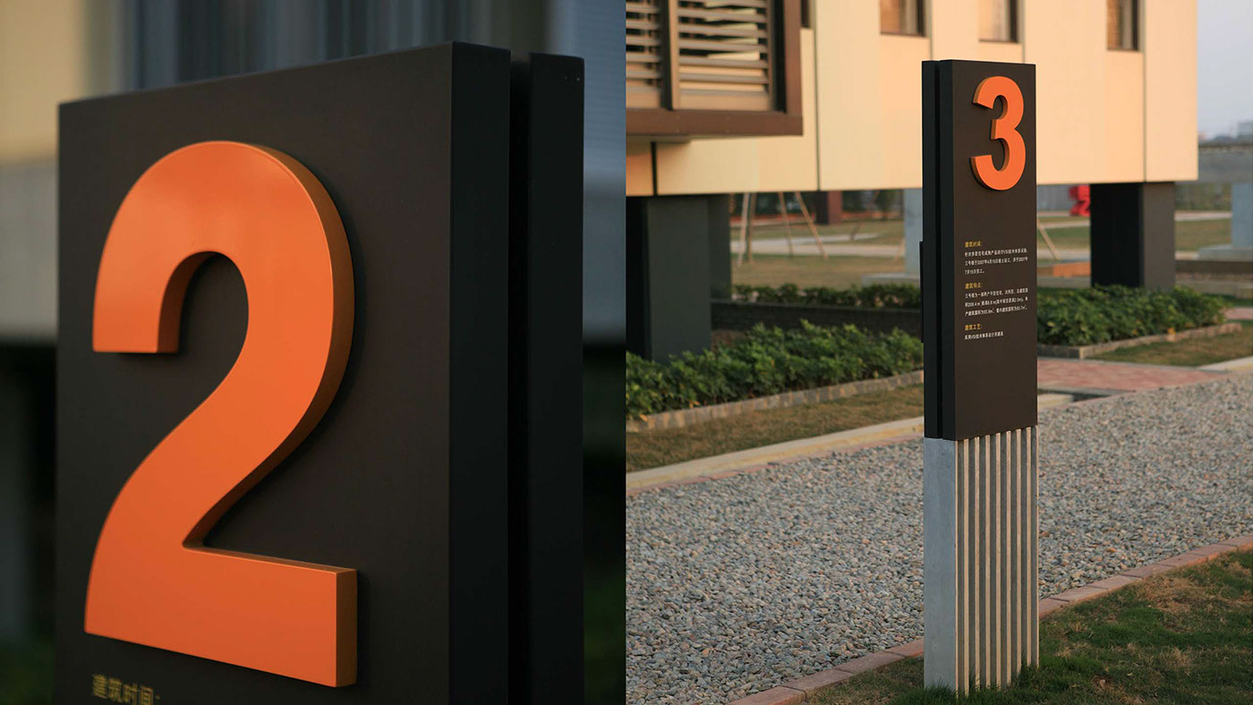 考虑到建设周期和后期维护,我们突破常规,和基地工程师合作,使用PC技术,设计导视系统,并在基地构件实验室工厂完成生产和组装。