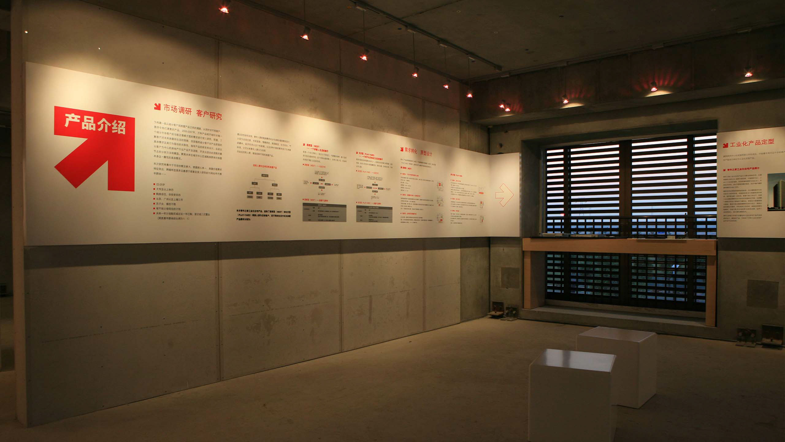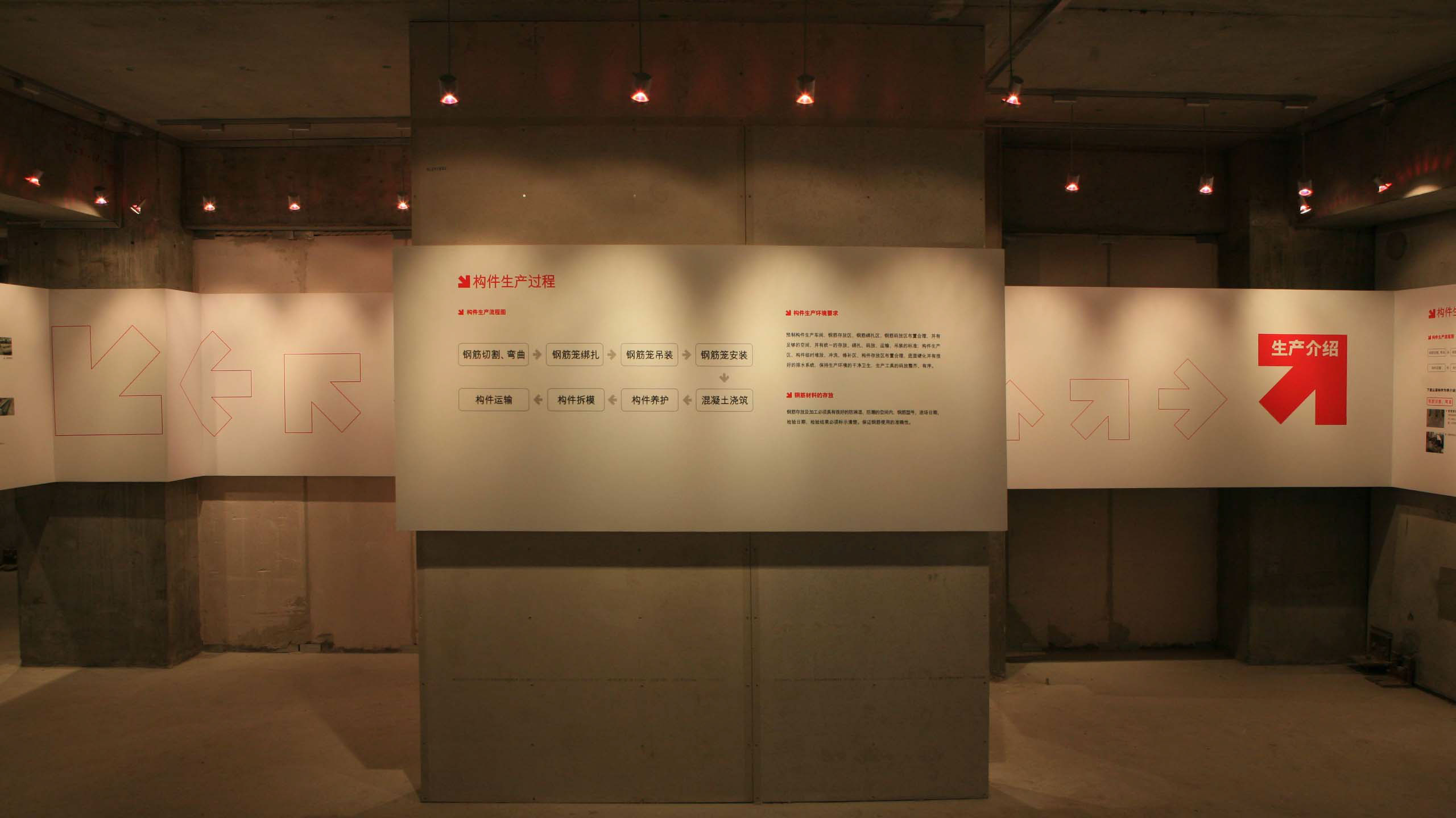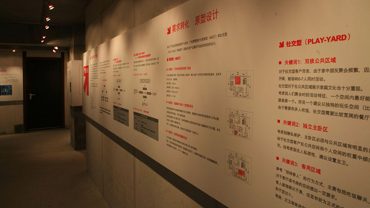 展现一套新技术,首先就要了解这套新技术。我们与技术工程师一道,分析参观路线,研究技术信息展示点并绘制体验地图。将“枯燥的技术数据”、“无趣的混凝土块”,改造成一个极富吸引力的展示空间。将“住宅产业化企业组装”这一抽象概念,转换为沉浸式品牌体验。